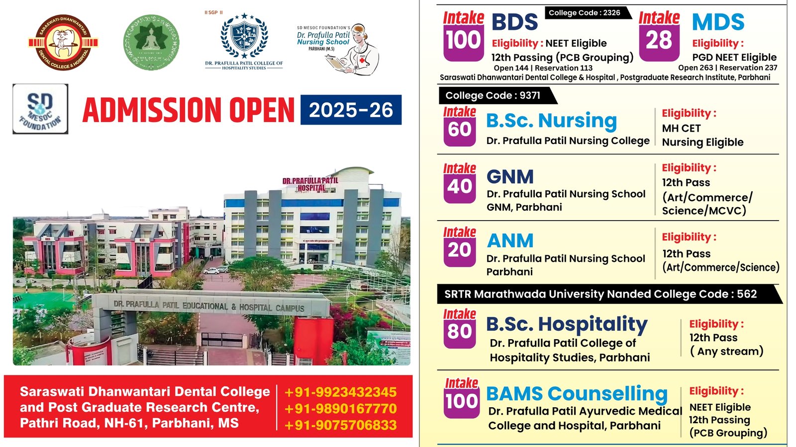 📍 Address: Prafulla Patil Educational Campus, Dr. NH - 61, Pathari Road, Parbhani, Maharashtra 431401